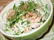Креветки откинуть в дуршлаг, дать жидкости стечь. Перемешать огурцы с креветками, посыпать мелко нарезанным укропом...